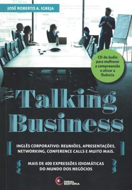 Talking Business aborda de forma abrangente o inglês empregado no mundo dos negócios dos países de língua inglesa. O livro apresenta diálogos, vocabulário e expressões idiomáticas, perguntas e frases usuais, siglas e abreviações do mundo corporativo e seções de exercícios para você consolidar o aprendizado. Os temas abordados no livro incluem: Trabalhando sobre pressão, lidando com conflitos e alcançando as metas. Reuniões, apresentações e feiras comerciais. Tecnologia e inovação no mundo dos negócios. Marketing online e mídias sociais. Relacionamento com fornecedores e funcionários da empresa. Planejamento e gerenciamento de um negócio. Fusões comerciais. Brainstorming, networking e conference calls. Importante: Acompanha um CD em áudio que ajuda a compreensão auditiva sobre os assuntos tratados. Um livro recomendado a todos que desejam: Conhecer expressões idiomáticas usadas no mundo dos negócios; reciclar frases e vocabulário-chave; participar de reuniões, apresentações, conference calls e entrevistas em inglês; viajar a negócios a um país de língua inglesa ou receber visitantes estrangeiros; redigir e compreender e-mails comerciais em inglês com mais facilidade.